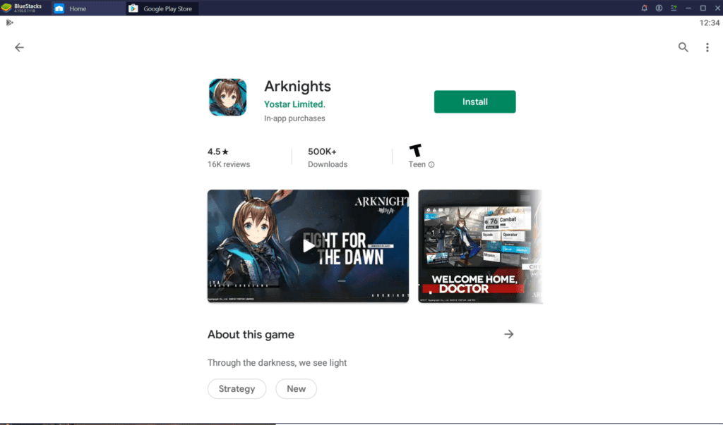 After downloading and launching Blue Stacks, simply open up the Google Play store and search for "Arknights". Upon launching Blue Stacks for the first time you'll be asked to log in to a Google account before you can access the Google Play Store. You can set up a dummy one just for Bluestacks or use your main one. Remember, if you want to play both on the PC and Mobile, use the same Gmail account you use on your mobile device.