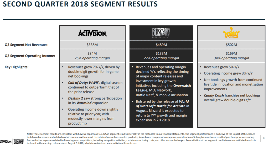 Activision Blizzard Reports Strong Q2 2018 Earnings