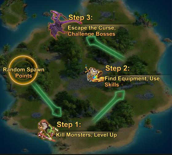 Isle of Doom is a 20 player cross-server PvPvE Battle Royale match that lasts a total of 10 minutes. Much like traditional Battle Royale games, a creeping "cursed mist" will force players to keep moving into smaller and smaller areas. In In a bizarre adaptation of the genre though, players can respawn up until the 9th minute of the 10 minute match. Players can kill eachother or monsters / bosses for a chance at high powered gear.