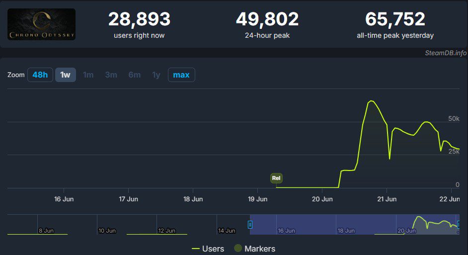 Chrono Odyssey launched their closed beta test on Steam yesterday and reached 65,000 concurrent players, which shows enormous market demand for a new MMORPG. While it's not an open beta and will have a wipe, anyone can register and play until the test ends tomorrow, June 22.