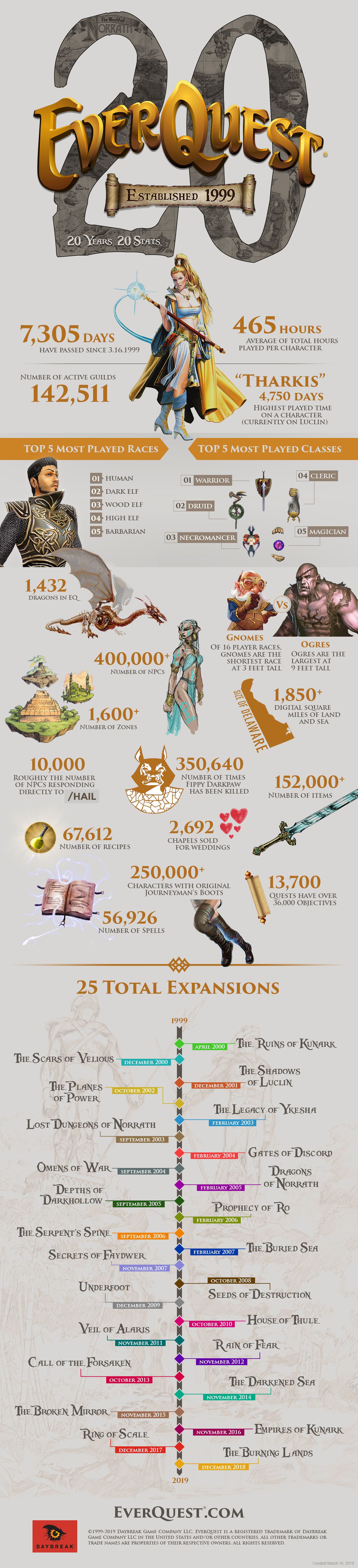 EverQuest also released an infographic to celebrate their 20th anniversary. Check it out below: