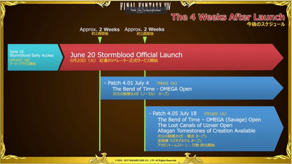 Also, at the E3 Live Letter, Square Enix formally announced the schedule for FFXIV's Stormblood launch, and patches 4.01 and 4.05. It comes to no surprise to people that this exactly mimics Heavensward's launch schedule, with the addition of the Lost Canals of Uznair, which is an Aquapolis-like instance, except for level 70 characters. Special loot and gil is available for those who manage to clear all sections of it.