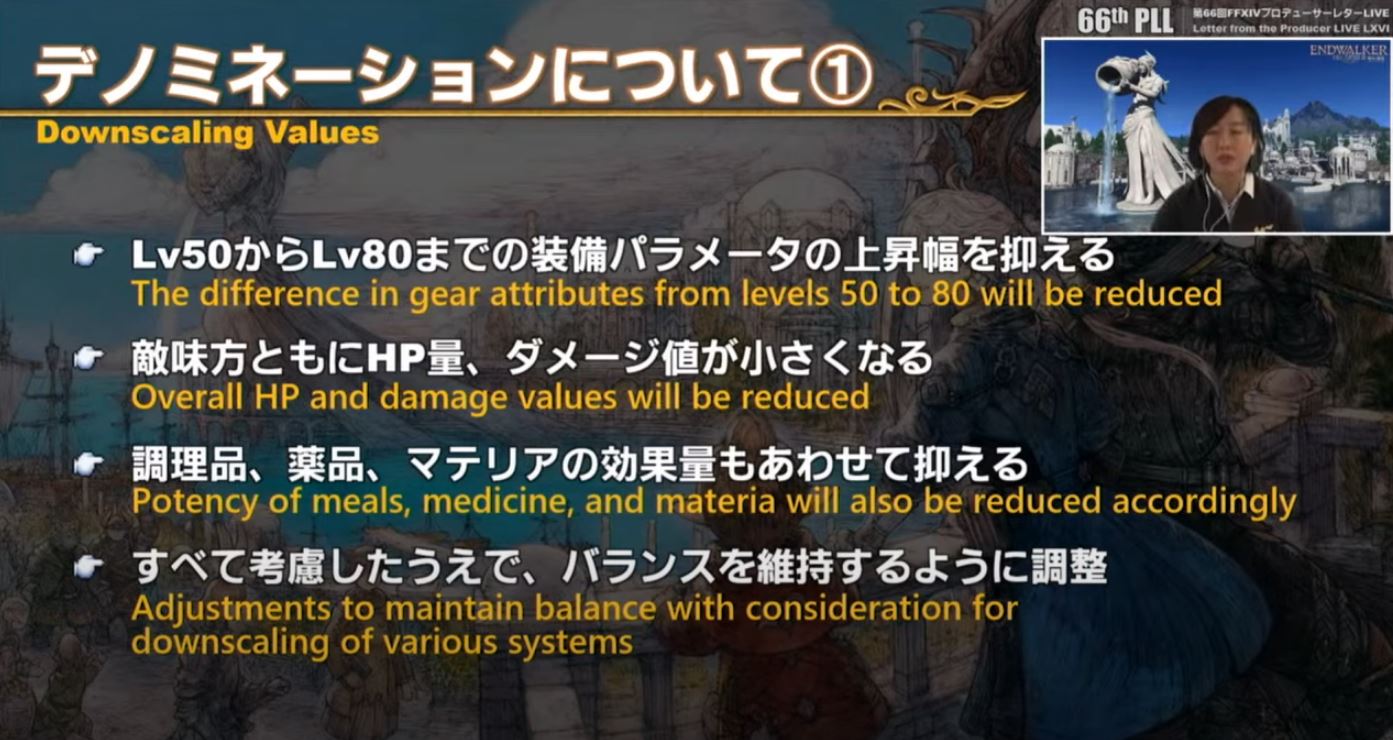 There's a lot a lot of other changes happening in Endwalker which were revealed last night. Final Fantasy XIV will have its first downscaling / crunch with the launch of Endwalker (nominal values will decrease but content will be rebalanced around it). Cross data center travel will be launching sometime after Endwalker launches.