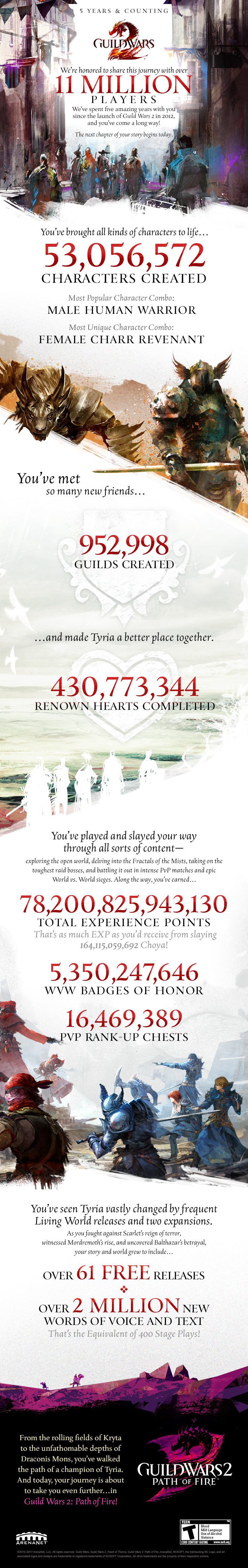 Check out the latest info-graphic released by ArenaNet for the game's 5th anniversary: