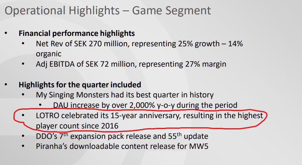 Lord of the Rings Online will also likely see a bump in playerbase once Amazon's new Lord of the Rings TV series 'Rings of Power' airs next month.