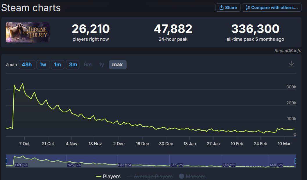 While NCSoft's Throne and Liberty had a strong launch, the game's playerbase has declined quickly.
