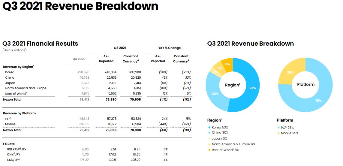 Nexon Reports Q3 2021 Earnings - Mobile Revenues Down, PC Up