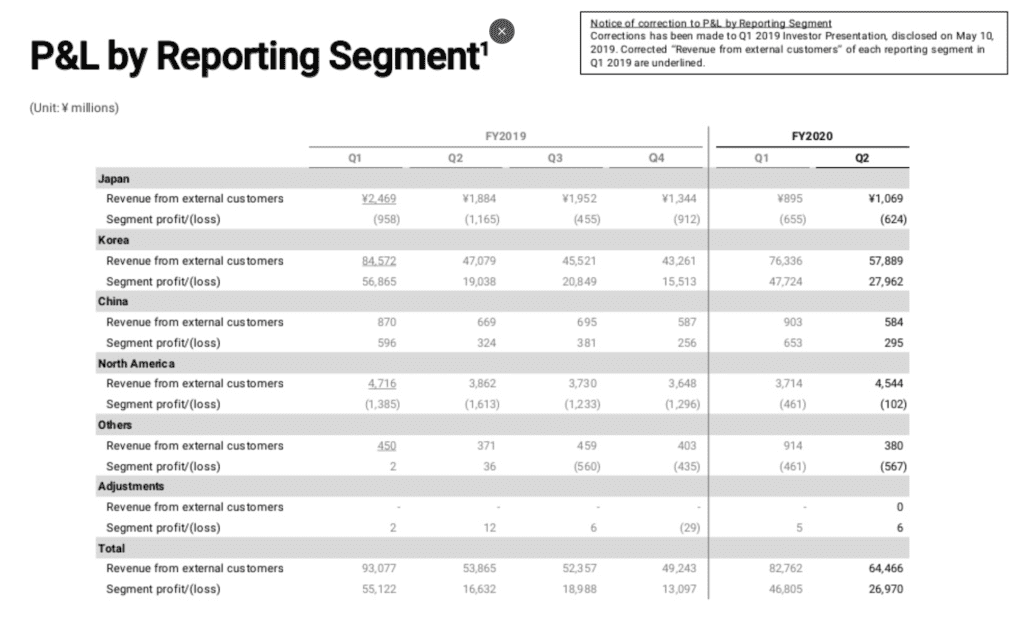 North America remains a money loser for Nexon with the company reporting losses of $1m for the quarter, a significant improvement over last year's $15m loss. Nexon's North American division hasn't reported a profit in over 10 years. The only reason losses are narrowing in North America is because of recent acquisitions. Nexon acquired Pixelberry in 2017 (Maker of the Choices games) and Big Huge Games in 2016 (maker of DomiNations). Despite these acquisitions, North America is still losing money, but given current trends Q3 could be the company's 1st profit in the region in over a decade.