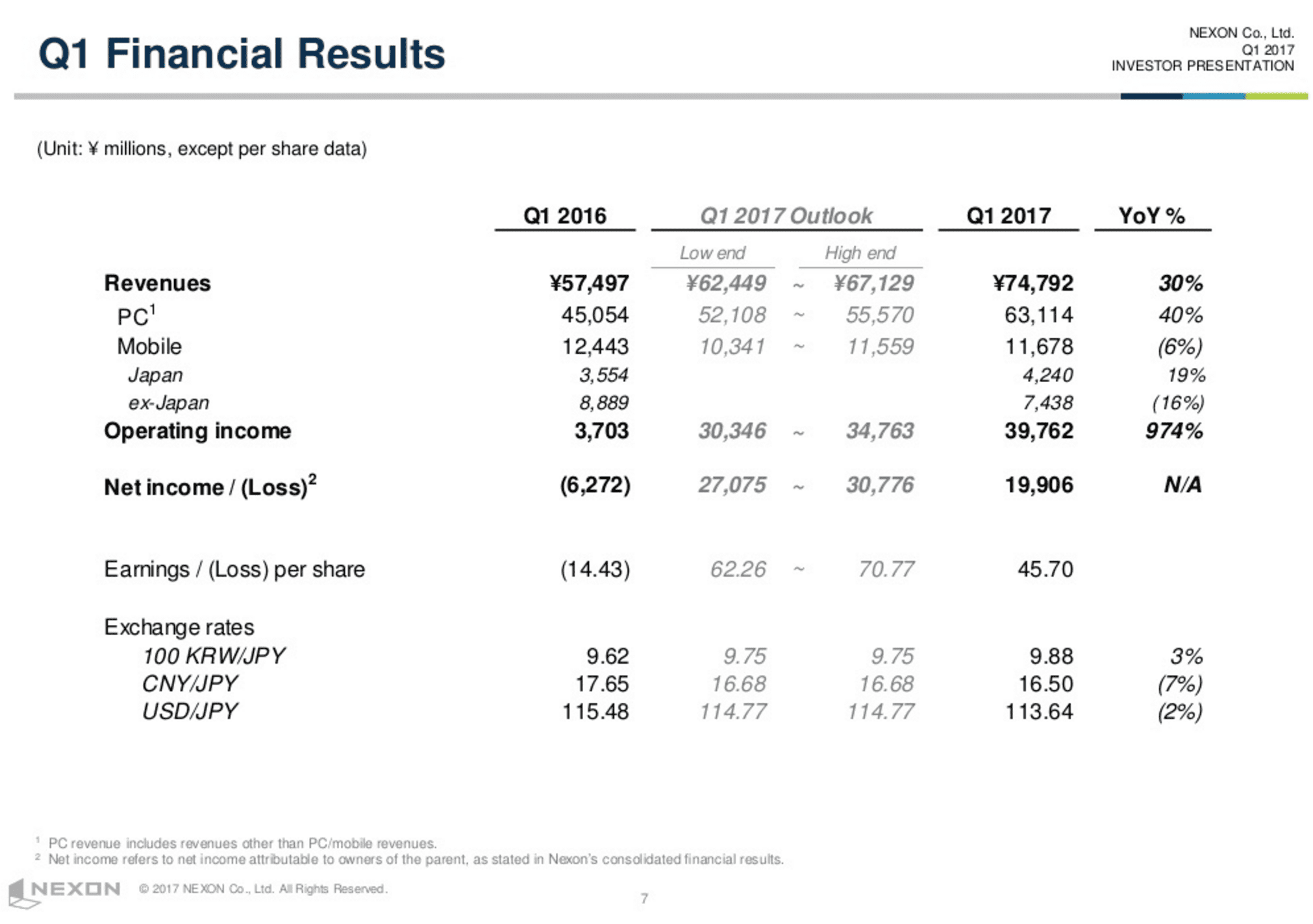 Some highlights from Nexon's Q1, 2017 Earnings Report