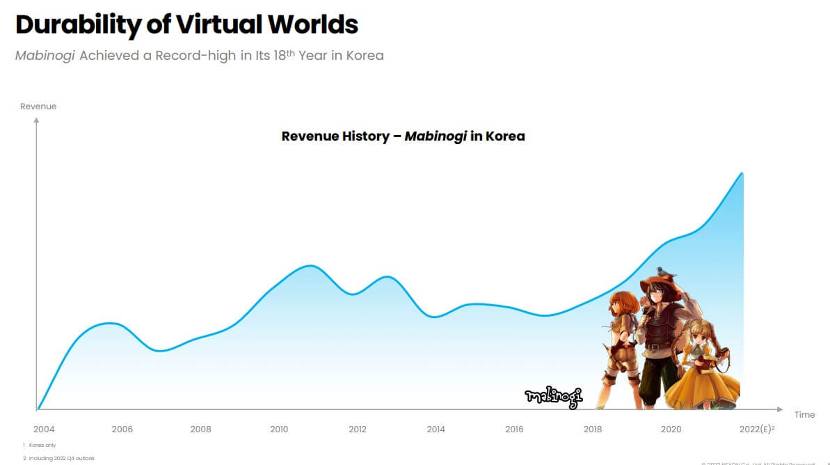 Interestingly Nexon's older games like Mabinogi continue to perform well 18+ years after originally launching in 2004! Mabinogi hit a record high in revenue in South Korea despite its age.