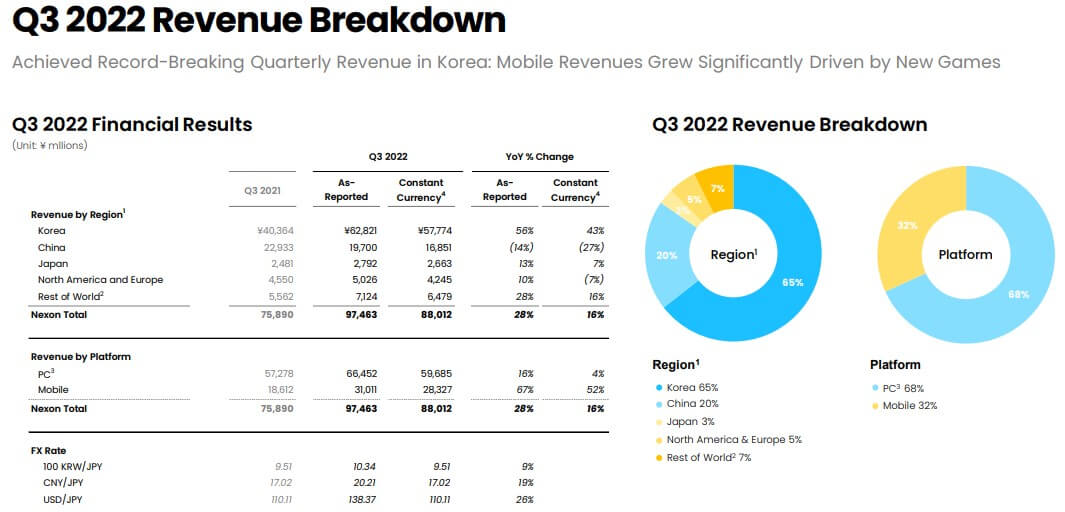 Nexon Reports Strong Q3 Revenues and Expects Highest Annual Revenue in Company's 28 Year History