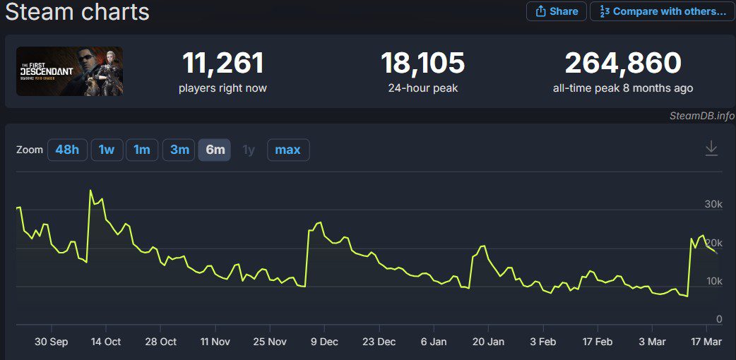 Lee’s GDC talk highlights The First Descendant’s journey from a criticized launch to a revitalized live-service title, driven by player feedback and systemic changes. While these changes have stabilized the game's playerbase, the the game is far from its initial launch numbers which peaked at 264,860 concurrent users.