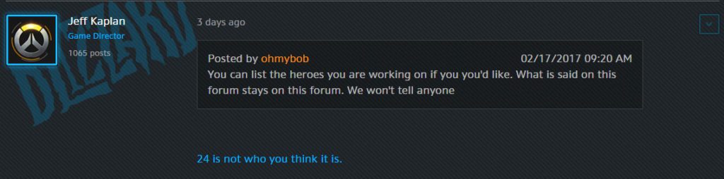 Overwatch is looking to add their 24th hero but it likely wont be Doomfist as most player speculation has been guessing. In a forum thread—about Sombra's sitting emote—Game director Jeff Kaplan cryptically responded to a question, saying "24 is not who you think it is."
