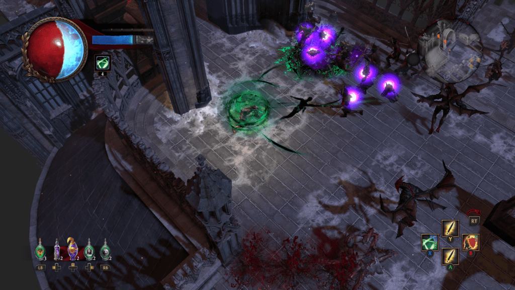 Arriving on the Xbox One store, Path of Exile will officially go live on August 24th, at 2 PM Pacific time! That's 5 PM Eastern, but there is already an optional starter pack available for preorder on the Xbox One store. I stress the word optional. The First Blood Pack includes 200 points to spend in the Cosmetic store, the First Blood weapon effect, and an Extra Stash Tab. Additionally, a screenshot of how Path of Exile will look on Consoles was shared! It seems like it'll be a natural fit for consoles.
