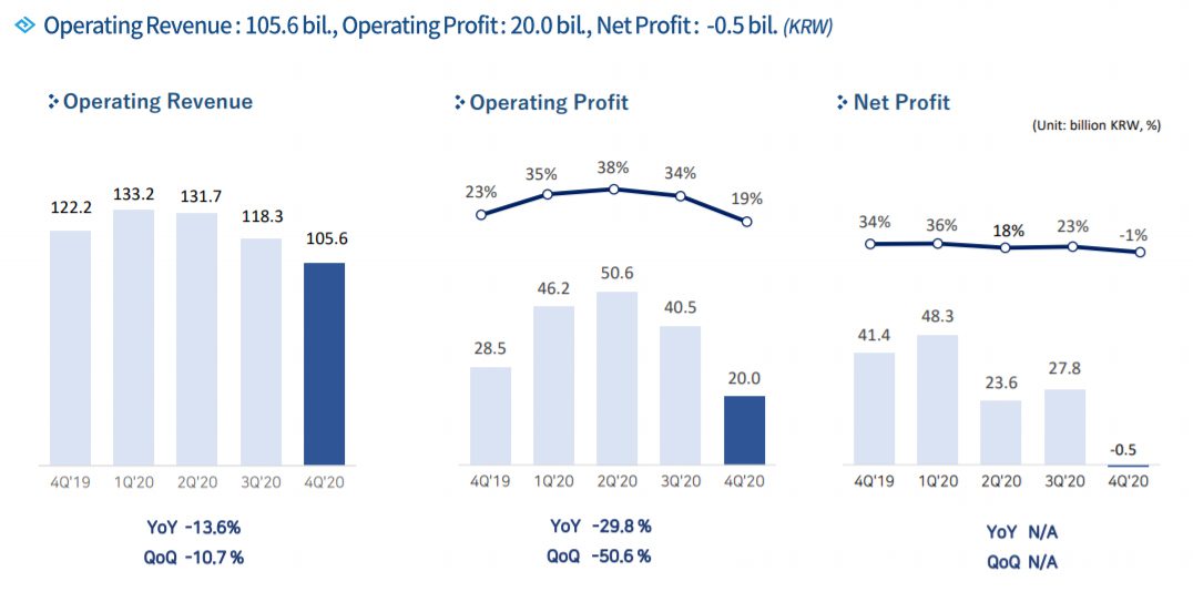 The Pearl Abyss Q4 2020 earnings report is now out showing a drop in profits and revenue both for the last fiscal quarter and 2020 as a whole. According to the report, the company saw a dip in operating revenue from ₩536B to ₩489B (roughly US$439M) year-over year.