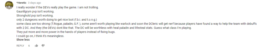 It's worth mentioning that there's a bit of an outcry from players surrounding the current state of the game. It's quite visible from the like to dislike ratio on the Swords of Chult video above.
