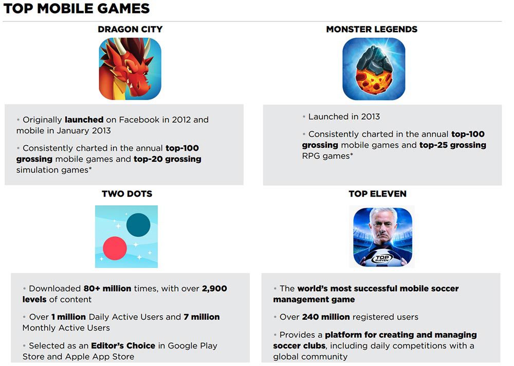 Like many other Western developers, Take-Two hasn't had much success in mobile gaming with the company's 4 most popular mobile games being relatively unknow (even Top Eleven doesn't make the top 100 highest grossing mobile games list in the U.S. It currently sits around the #400 spot).