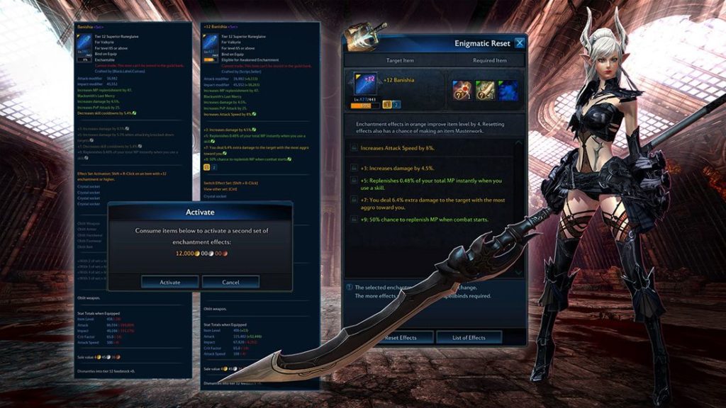 The Tier 12 Oblit and Deathwrack sets, as well as the Tier 11 Misery, Ambush, and Behemoth sets, all support two different sets of options, for different fights and scenarios. However, the armor must first be upgraded to +12, and then a one-time human blood sacrifice gold payment is needed to fully unlock the armor's potential.