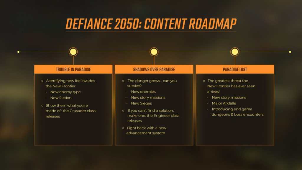 Just shortly after Deifance 2050 launched on the PC and consoles, Trion Worlds came out and revealed their development roadmap for the game: