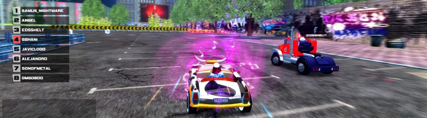 - Addictive 8-player online races and single-player time attack mode